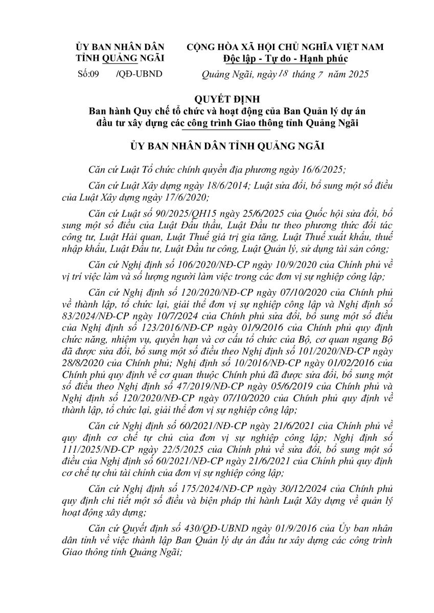 BAN QUẢN LÝ DỰ ÁN ĐẦU TƯ XÂY DỰNG CÁC CÔNG TRÌNH GIAO THÔNG TỈNH QUẢNG NGÃI
