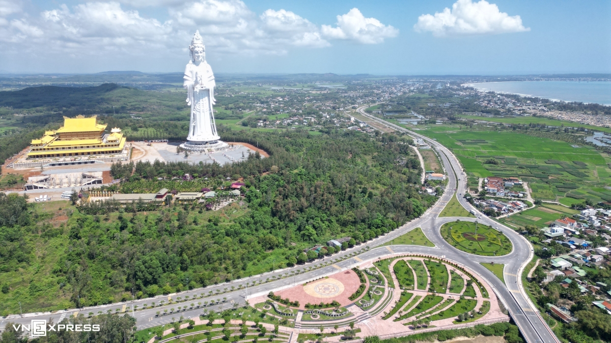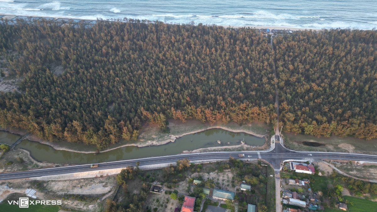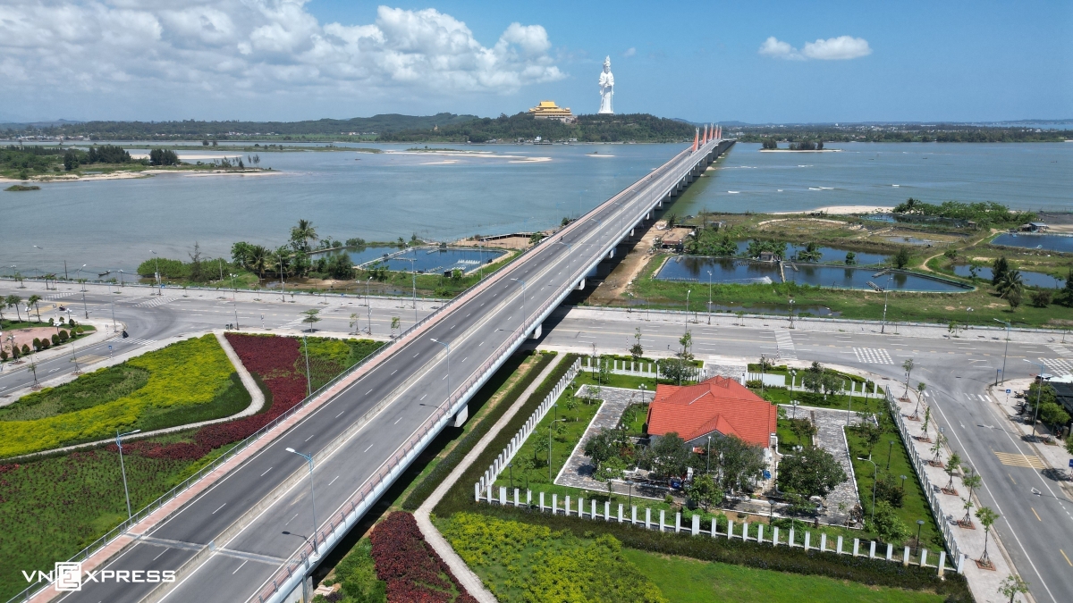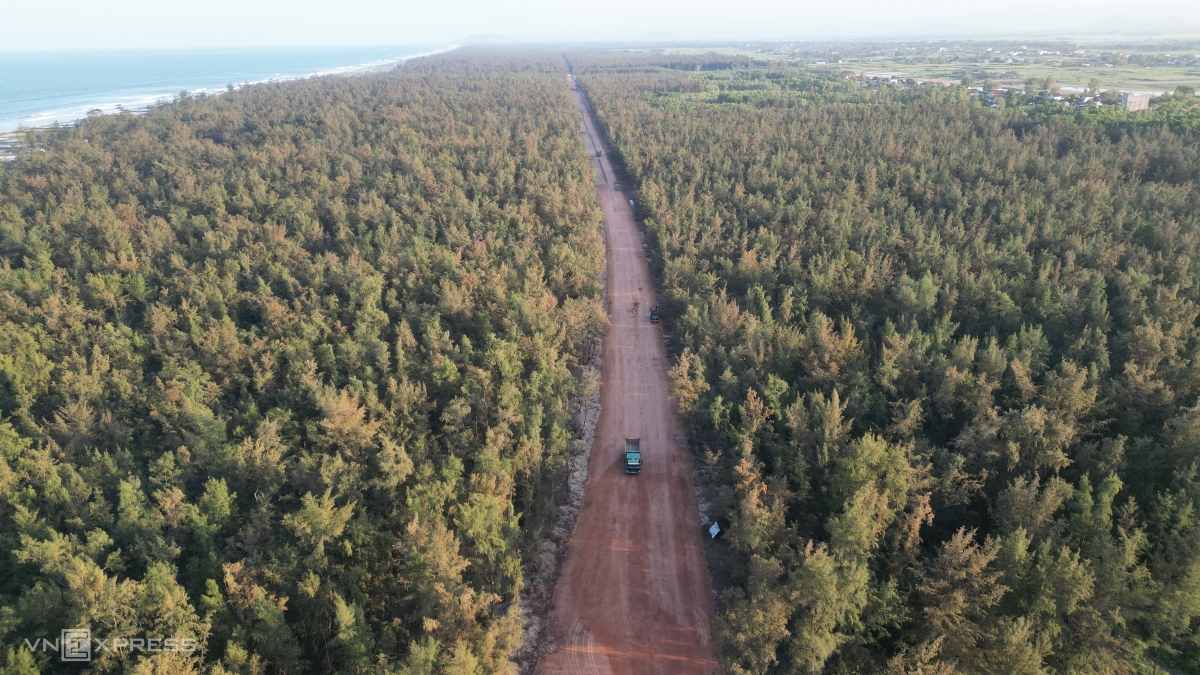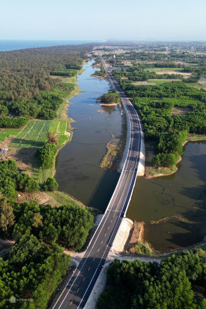 (BaoVNexpress) - Tuyến đường ven biển Quảng Ngãi dài hơn 100 km, tổng vốn 5.600 tỷ đồng, băng qua rừng dương, vượt sông Trà Khúc và sông Vệ, kết nối Dung Quất - Chu Lai - Sa Huỳnh.