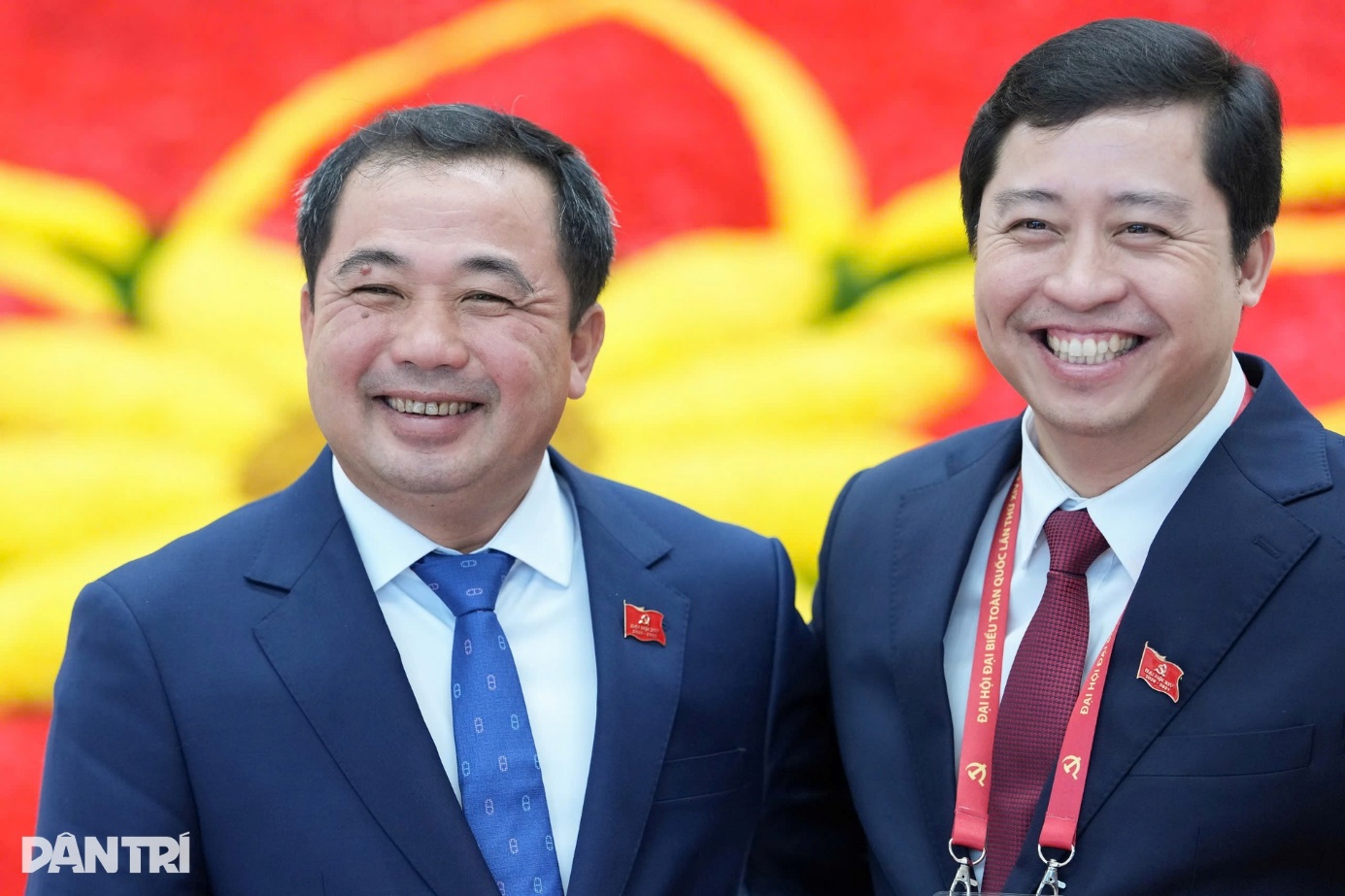 Bộ trưởng Nông nghiệp và Môi trường Trần Đức Thắng (bên trái) chụp ảnh cùng đại biểu dự Đại hội XIV của Đảng.