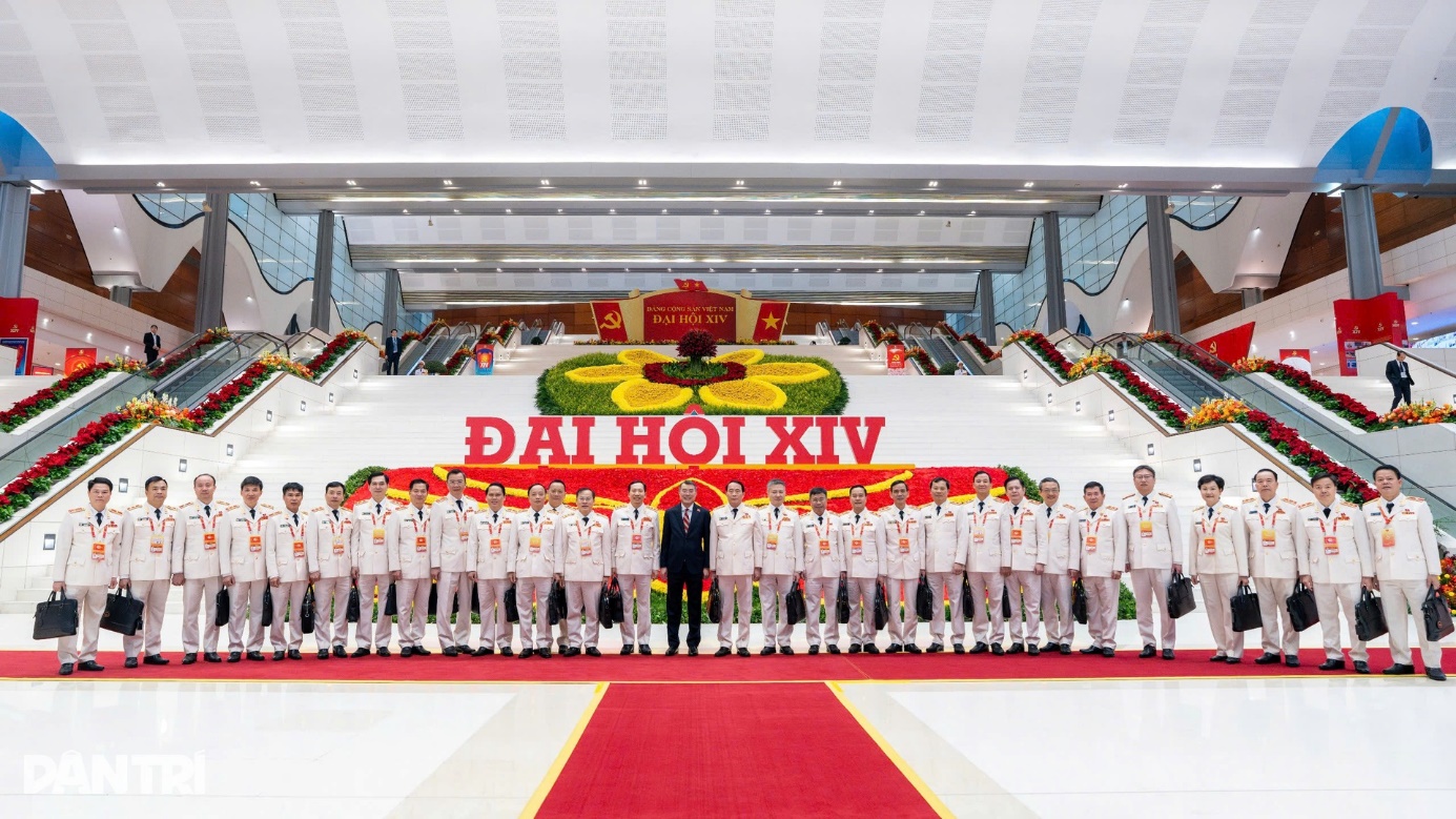 Trưởng Ban Tổ chức Trung ương Lê Minh Hưng chụp ảnh lưu niệm cùng các đại biểu Đảng bộ Công an nhân dân.