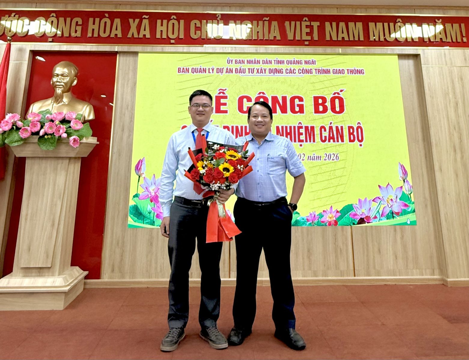 Chiều ngày 02/02/2026, tại Hội trường Ban Quản lý dự án đầu tư xây dựng các công trình Giao thông tỉnh (viết tắt là Ban Quản lý dự án) đã tổ chức Lễ Công bố quyết định bổ nhiệm cán bộ.
