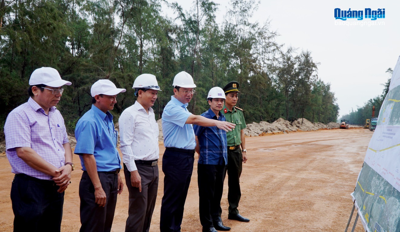 Phó Chủ tịch UBND tỉnh Nguyễn Công Hoàng kiểm tra dự án Đường ven biển Dung Quất - Sa Huỳnh