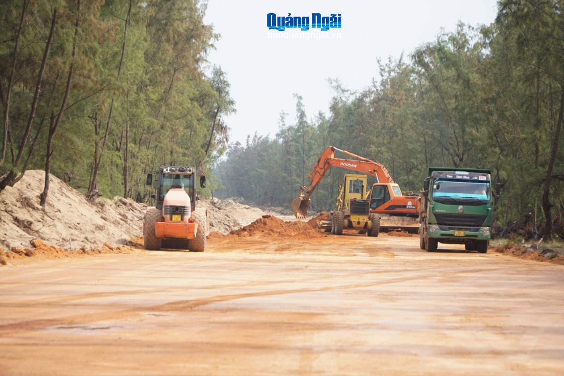 Dự án Đường ven biển Dung Quất - Sa Huỳnh giai đoạn IIa thành phần 1 có tổng chiều dài tuyến 13,28km, qua các xã An Phú, Tư Nghĩa, Vệ Giang, Long Phụng, Mỏ Cày; tổng mức đầu tư gần 1.200 tỷ đồng; khối lượng thi công hiện đạt 88% giá trị hợp đồng.