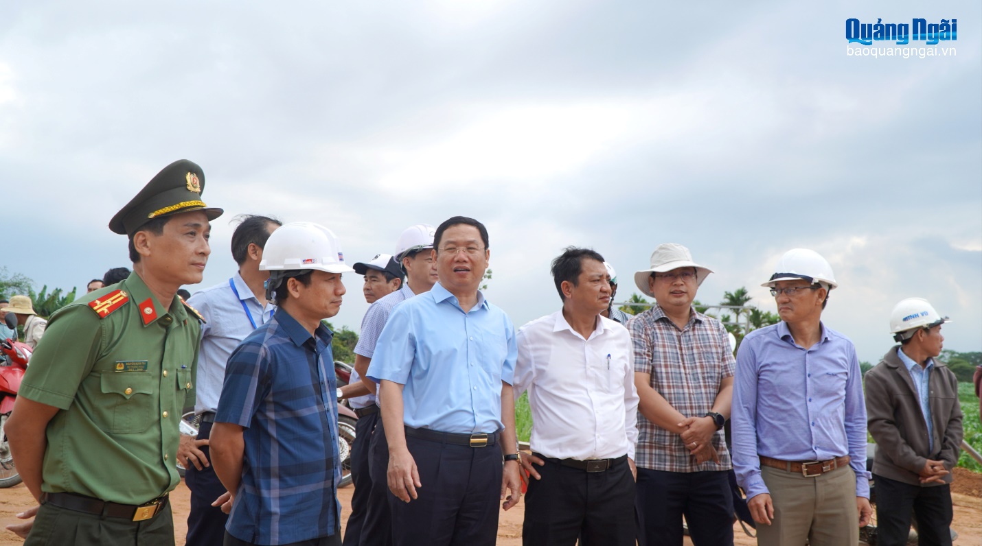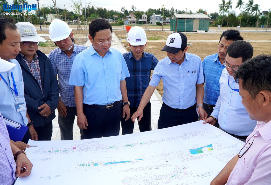 Kiểm tra công tác xây dựng khu tái định cư Khánh Lạc (xã An Phú) phục vụ di dân, thu hồi đất ở xây dựng đường ven biển Dung Quất - Sa Huỳnh, Phó Chủ tịch UBND tỉnh Nguyễn Công Hoàng đánh giá cao tinh thần trách nhiệm của Ban Quản lý dự án Đầu tư xây dựng các công trình giao thông Quảng Ngãi trong việc đôn đốc nhà thầu tăng ca, hoàn thành toàn bộ 82 lô nền sớm hơn kế hoạch đề ra.