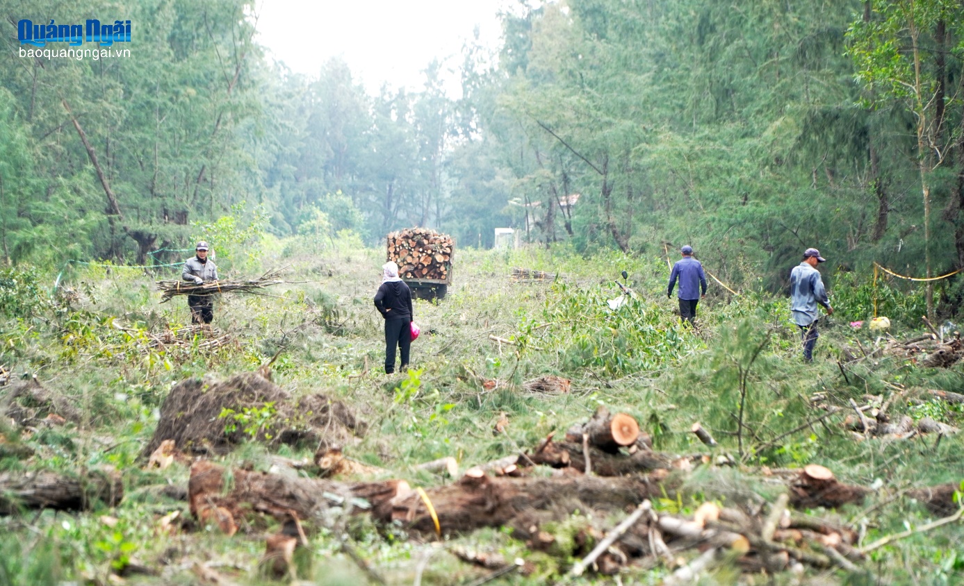 Thanh lý rừng ven biển thuộc xã Mỏ Cày, lấy đất phục vụ thi công đường ven biển Dung Quất - Sa Huỳnh.