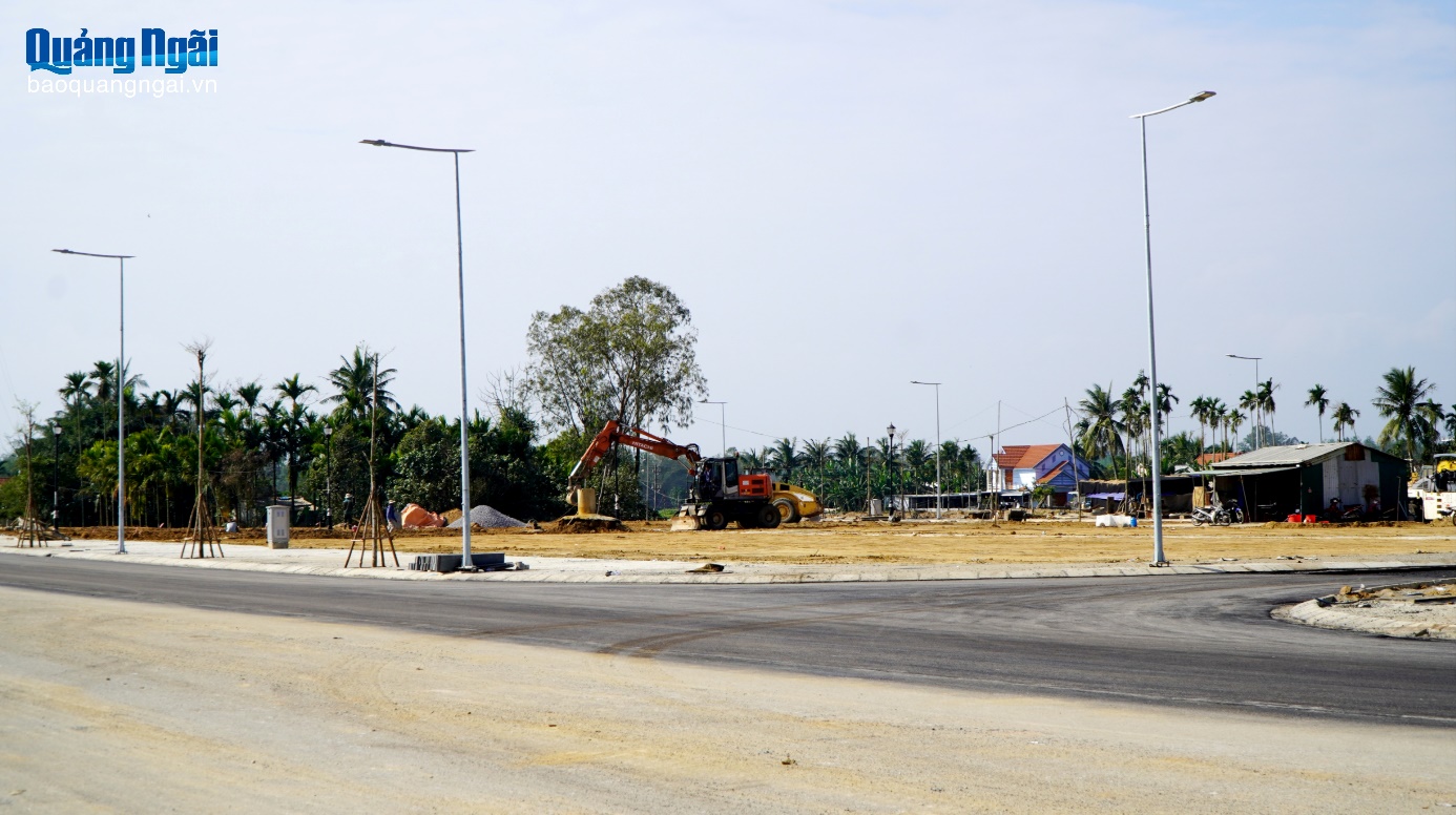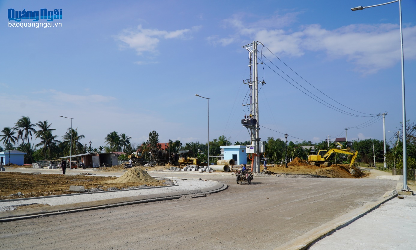 Khu tái định cư Khánh Lạc đang trong giai đoạn hoàn thành, phục vụ di dân, thu hồi đất xây dựng đường ven biển Dung Quất - Sa Huỳnh đoạn qua xã Tư Nghĩa.