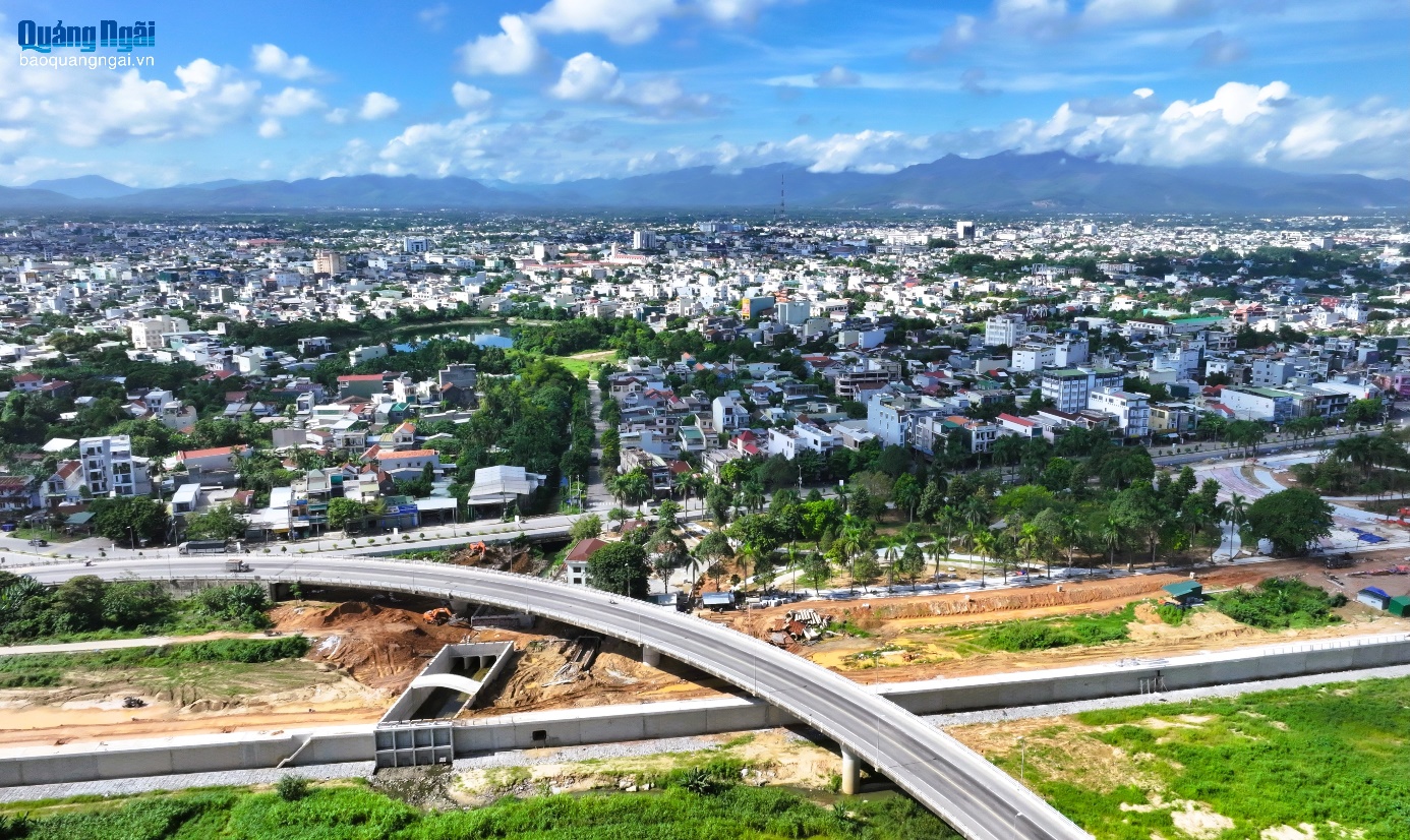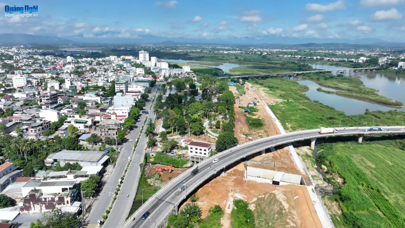 Khu vực đảo nút giao cầu Trà Khúc 2 với đường Bà Triệu sẽ được bổ sung hệ thống điện chiếu sáng, trang trí để hài hòa với cảnh quan phía bờ sông mới được tôn tạo.