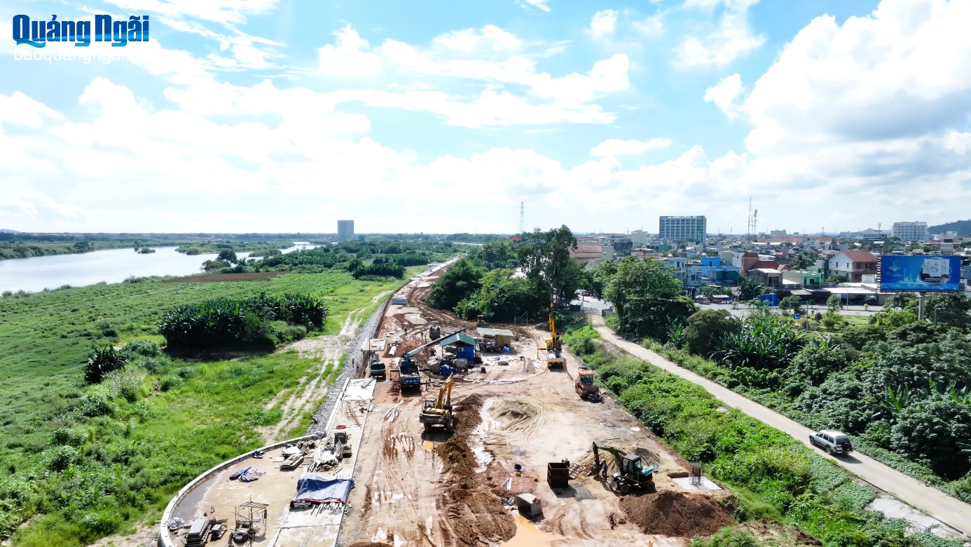 (Baoquangngai.vn)- Dự án Kè chống sạt lở và tôn tạo cảnh quan bờ nam sông Trà Khúc (phường Nghĩa Lộ) đang được đẩy nhanh tiến độ, góp phần làm thay đổi rõ nét diện mạo khu vực trung tâm đô thị Quảng Ngãi.