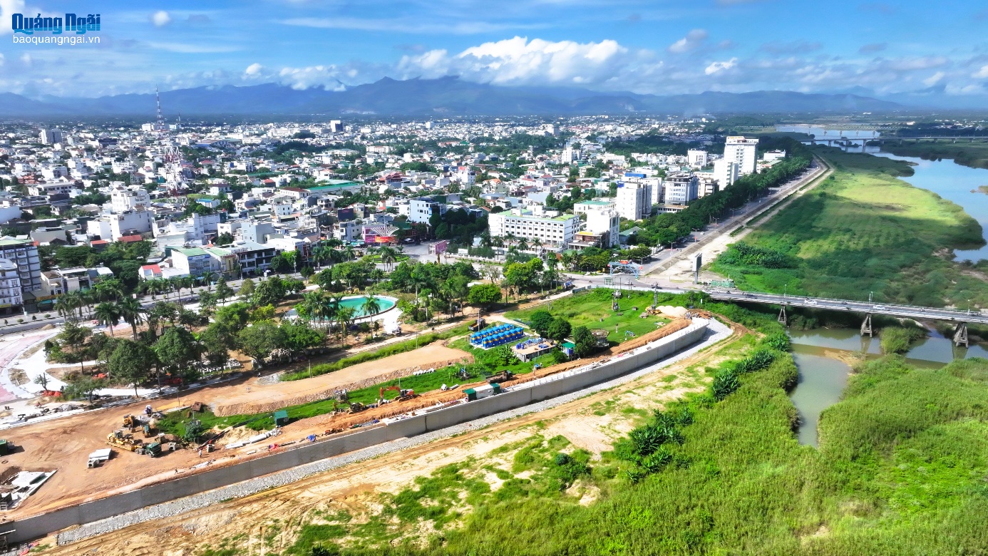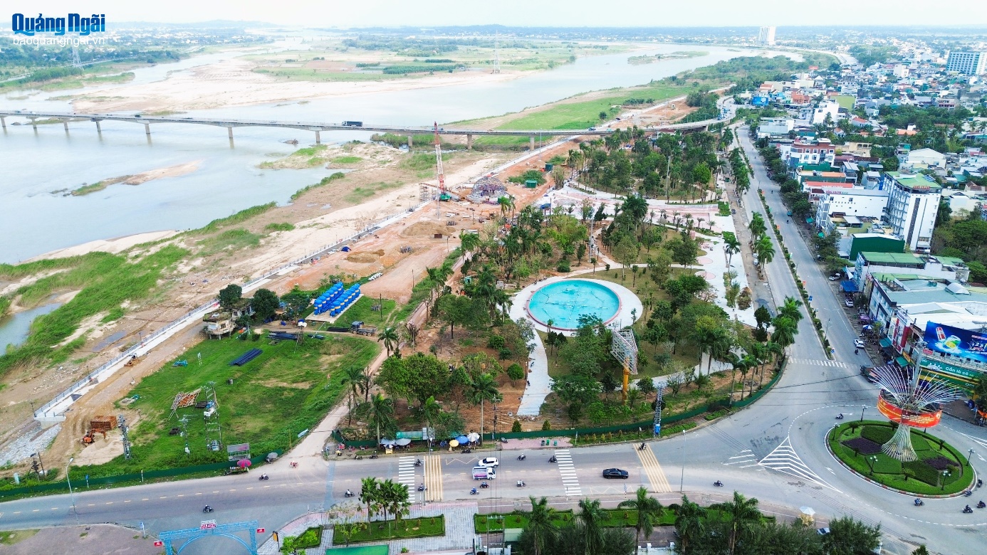Công viên Ba Tơ là một trong số phần việc của dự án kè chống sạt lở và tôn tạo cảnh quan bờ nam sông Trà Khúc đang dần được hoàn thiện.