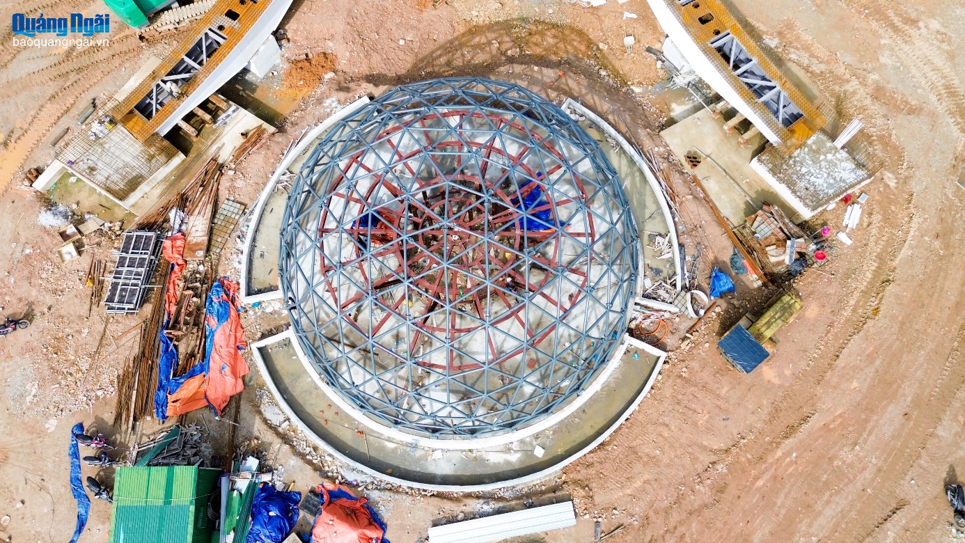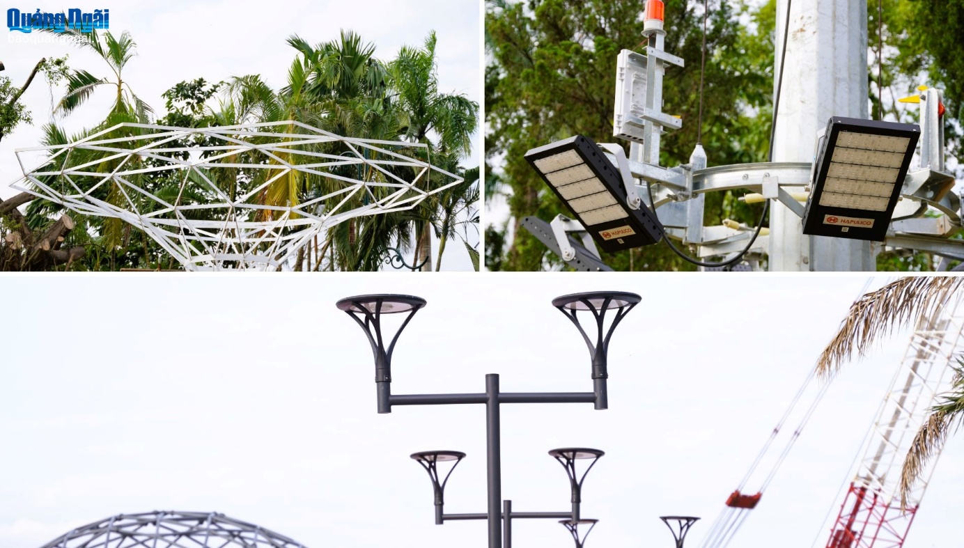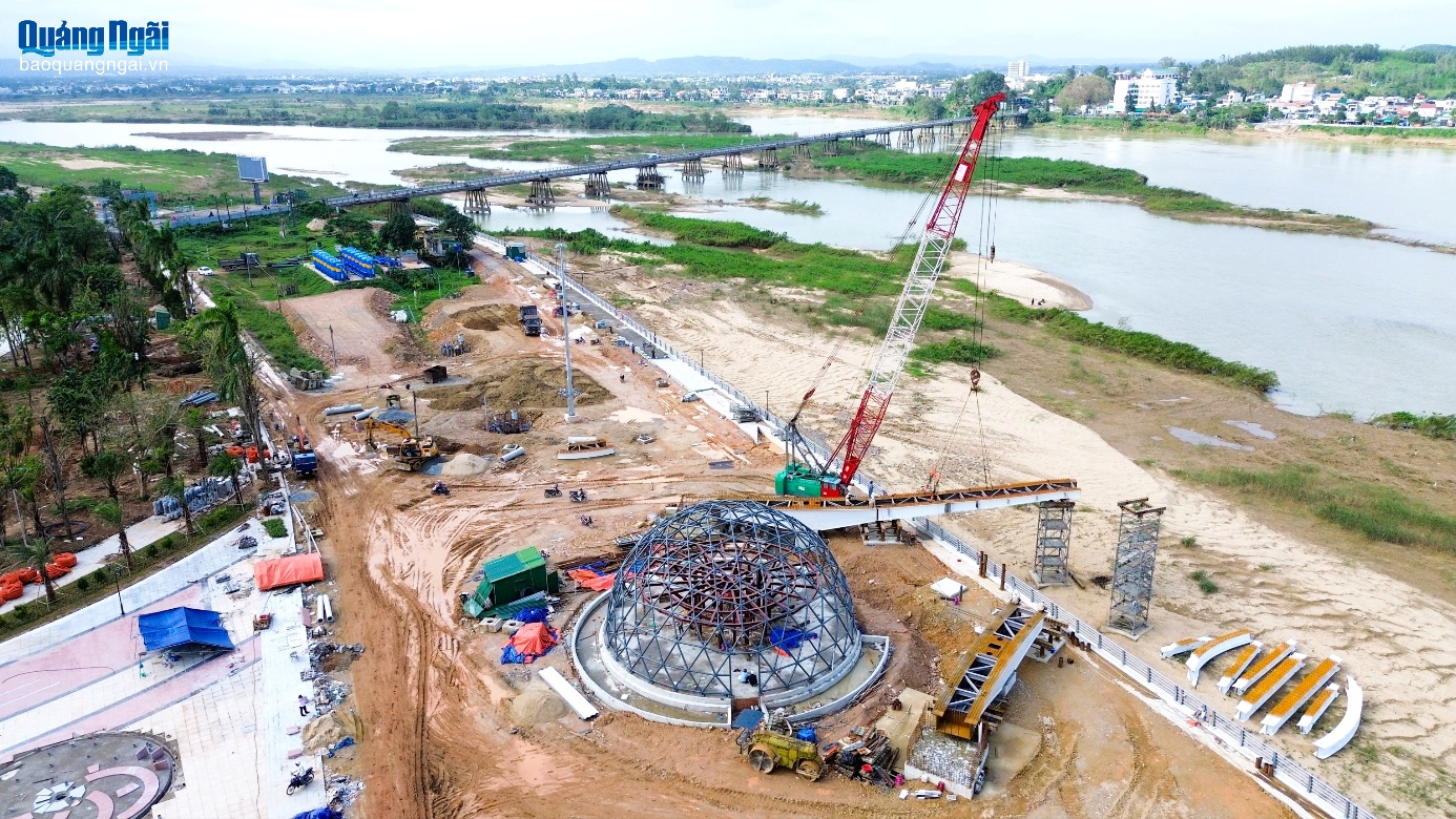 Nổi bật trong tổng thể dự án là cụm bán cầu ánh sáng và đài vọng cảnh hình mũi thuyền vươn ra sông Trà Khúc, mang thông điệp “Quảng Ngãi vươn mình ra biển lớn”.