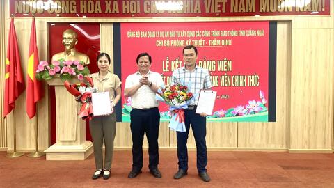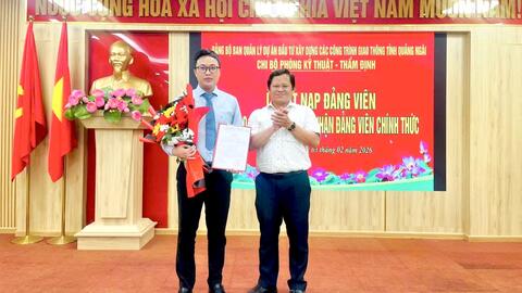 Chiều ngày 03/02/2026 được sự thống nhất của Đảng bộ Ban Quản lý dự án đầu tư xây dựng các công trình Giao thông tỉnh, Chi bộ phòng Kỹ thuật - Thẩm định tổ chức Lễ kết nạp đảng viên mới cho quần ...