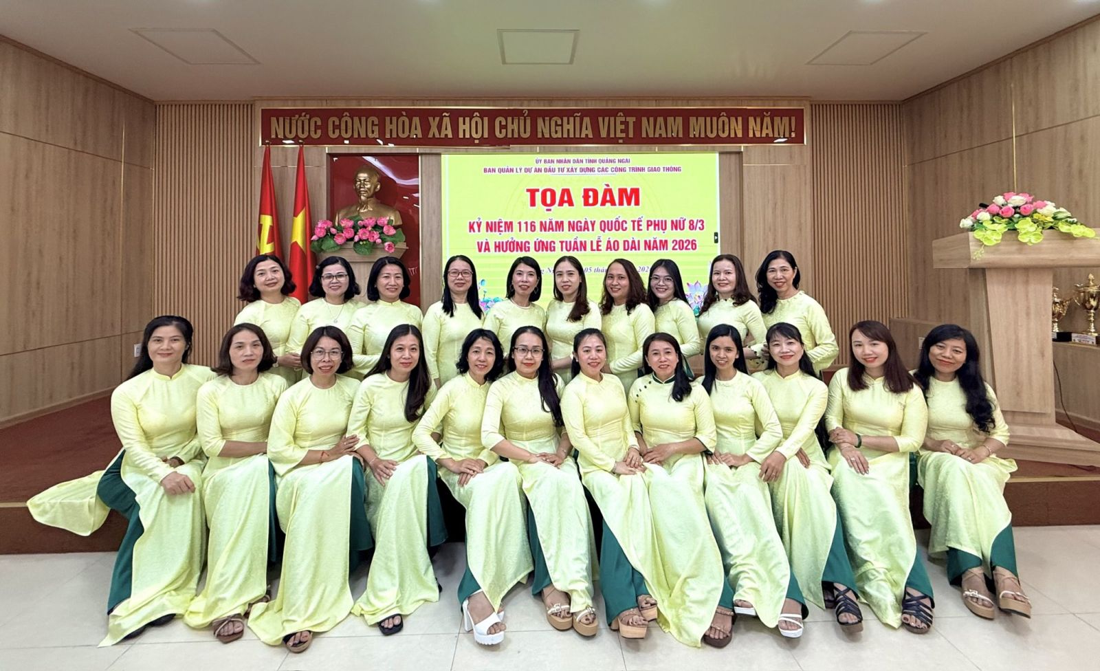 Nằm trong chuỗi các hoạt động chào mừng ngày 8/3 và tuần lễ áo dài do Hội Liên hiệp Phụ nữ Việt Nam phát động, sáng ngày 05/3/2026, Nữ viên chức, người lao động Ban Quản lý dự án đầu tư xây dựng các công trình Giao thông tỉnh tổ chức buổi Tọa đàm nhân kỷ niệm 116 năm Ngày Quốc tế Phụ nữ 8/3 (8/3/1910 – 8/3/2026).