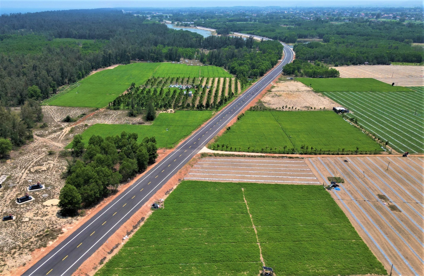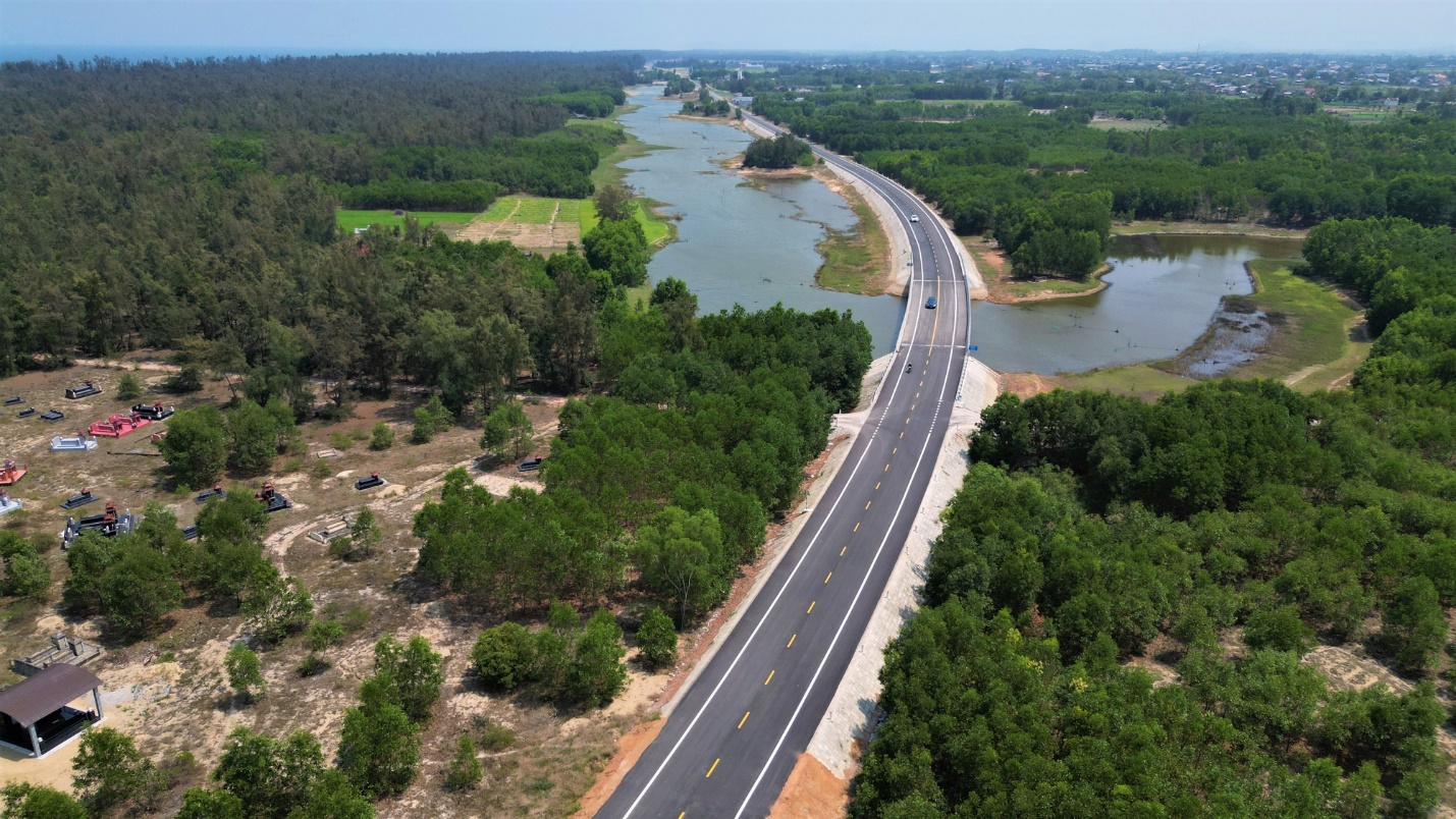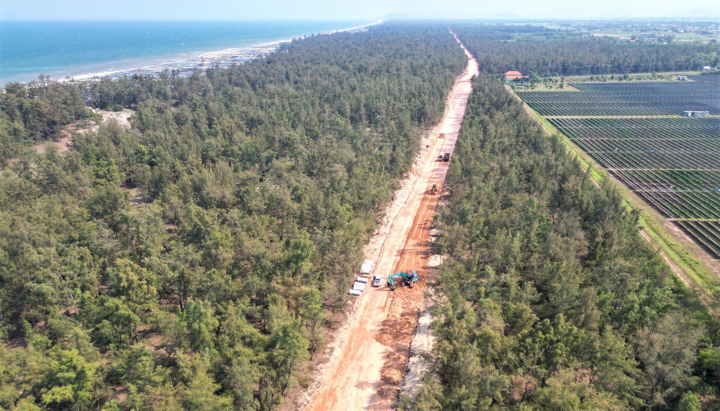 Trên nền cát trắng, giữa rừng dương xanh, mặt đường bê tông nhựa trải dài; các hạng mục còn lại đang được khẩn trương hoàn thiện, chuẩn bị nghiệm thu, đưa vào khai thác.