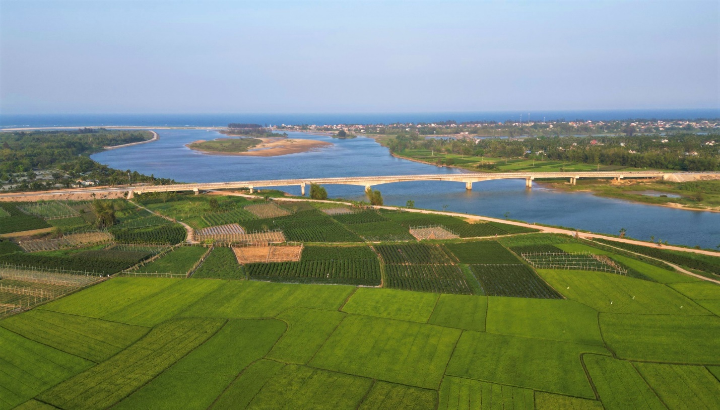 Tuyến đường ven biển đẹp nhất Quảng Ngãi hình thành trên địa hình xen kẽ rừng cây, sông nước và khu dân cư, với mặt đường bê tông nhựa rộng, tầm nhìn thoáng.