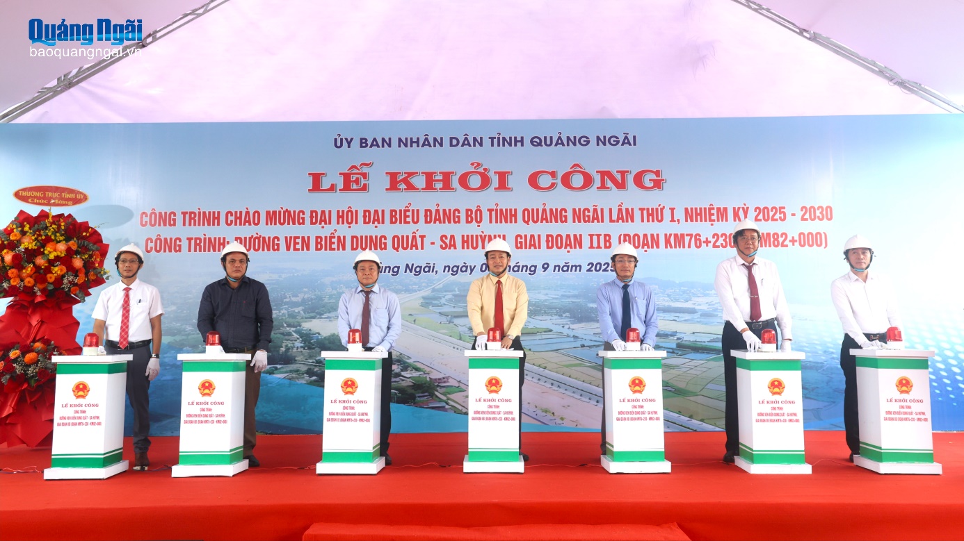 (Baoquangngai.vn) - Nằm trong chuỗi các công trình gắn biển chào mừng Đại hội đại biểu Đảng bộ tỉnh lần thứ I, nhiệm kỳ 2025 - 2030, Ban Quản lý dự án Đầu tư xây dựng các công trình giao thông tỉnh đã khởi công Dự án Đường ven biển Dung Quất - Sa Huỳnh, giai đoạn IIb, đoạn Km76+230 - Km82+000.