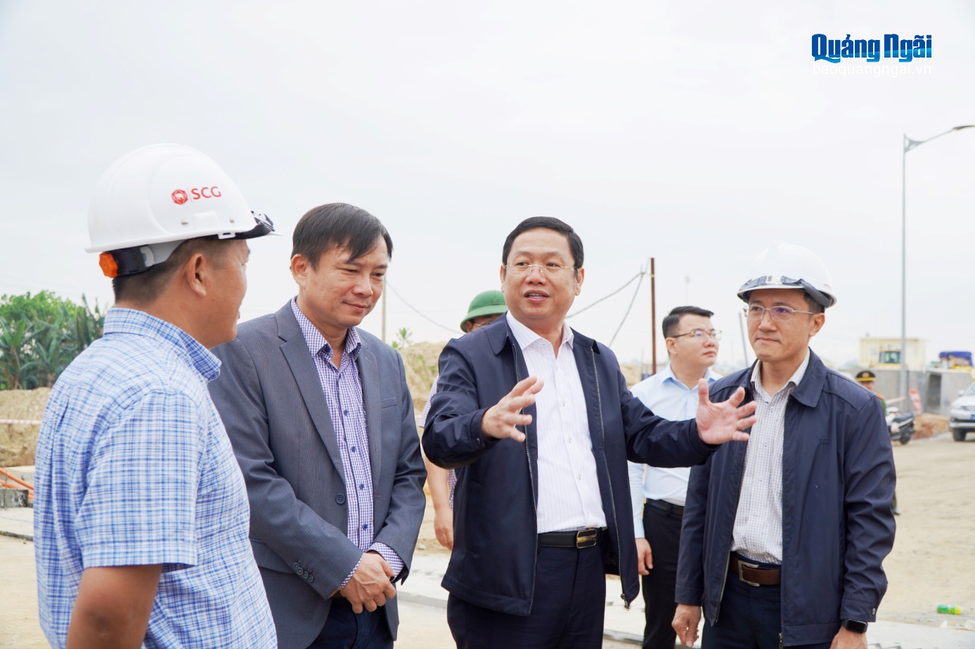 Tại hiện trường, Phó Chủ tịch UBND tỉnh Nguyễn Công Hoàng yêu cầu chủ đầu tư đôn đốc nhà thầu đẩy nhanh tiến độ thi công, phấn đấu trước ngày 31/1/2026 phải cơ bản hoàn thành các hạng mục, nhất là nền đường, mặt đập, điện chiếu sáng; tổ chức kết nối hai bờ bắc - nam sông Trà, thông xe qua đập, phục vụ người dân đi lại trong dịp tết Nguyên đán Bính Ngọ 2026.